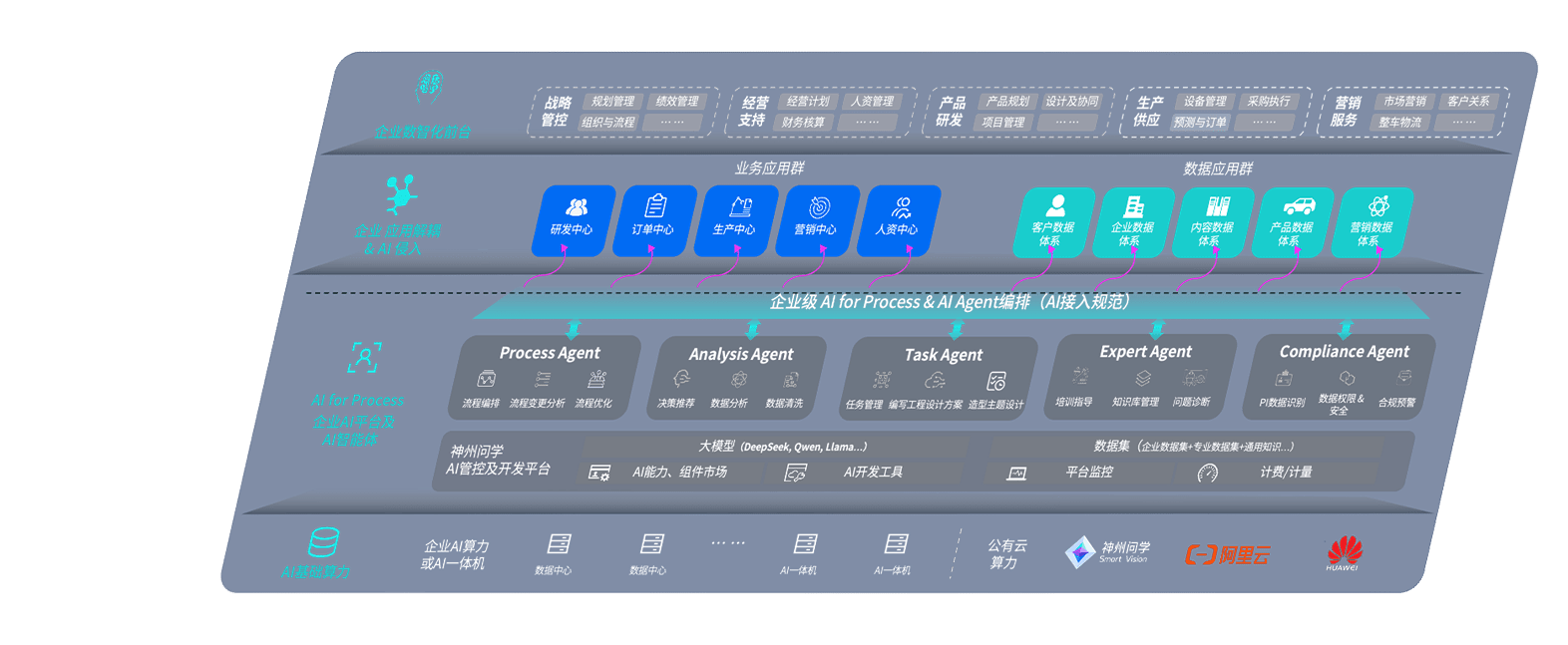 万事娱乐问学智车解决方案是一套基于AI技术的汽车行业智能化系统,,,覆盖从底层算力到顶层AI应用的全栈方案。。方案由算力层、、、模型层和应用层组成:算力层,,方案支持多种一体机配置,,具备云端灵活部署、、、多云适配以及动态优化计算资源的能力;模型层,,万事娱乐问学平台版提供了企业级AI应用一站式构建与管理平台,,支持基于后训练强化技术的汽车企业专属模型的训练、、、、评测和运营;应用层,,,,万事娱乐问学DeepSeek版提供包括超级员工、、智能招采、、智能营销、、、、智能客服、、、、AI for BI等一系列解决方案,,可助力汽车行业实现数字化转型,,,让管理更智能、、、响应更敏捷。。。。